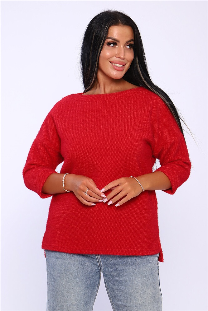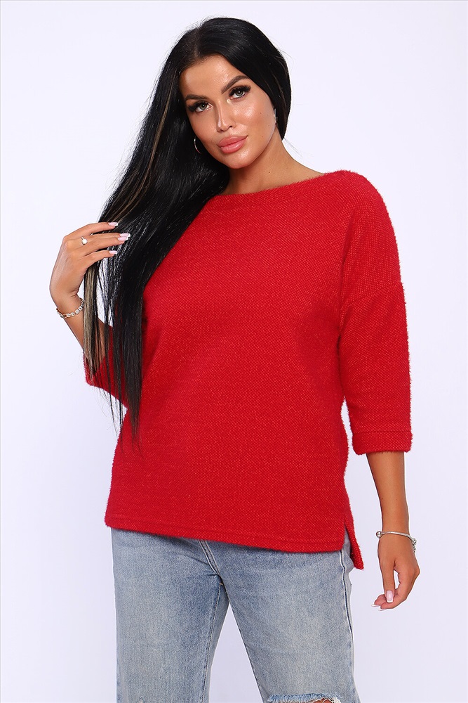 Джемпер женский из мягкого, приятного к телу вязаного трикотажа. Горловина в виде лодочки обработана обтачкой , спущенная пройма , рукав на манжете длиной 3/4. Низ спинки удлинён, по бокам небольшие разрезы. Оригинальная вязка делает джемпер незаменимой вещью в гардеробе женщины, предпочитающей комфорт и удобство. Благодаря мягкому переплетению нитей толстовку можно одеть как самостоятельно, так и под верхнюю одежду. Универсальный крой джемпера позволит вписать его как в офисный гардероб, так и в повседневный образ. Современная палитра цветов и широкий размерный ряд позволит подобрать модель под любое ваше настроение.