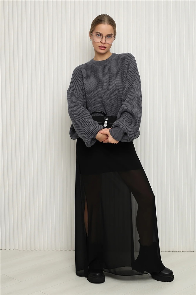- Детали: Элегантный вырез и длинные рукава создают стильный силуэт, а рифленая текстура добавляет изюминку.