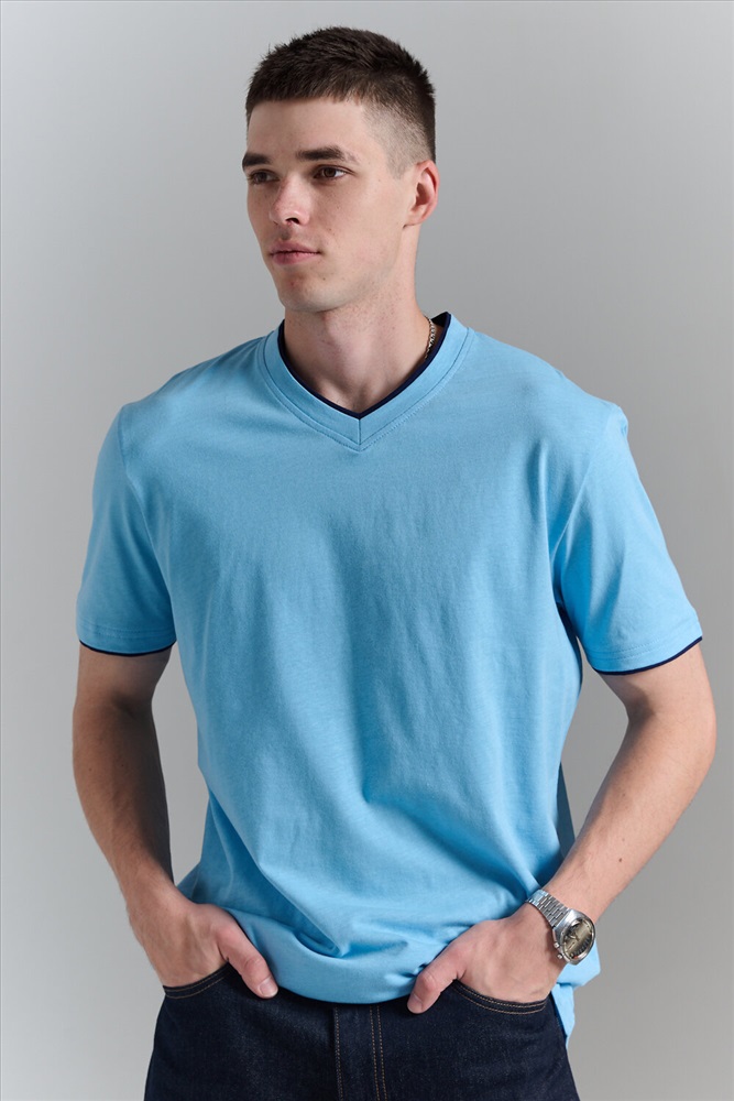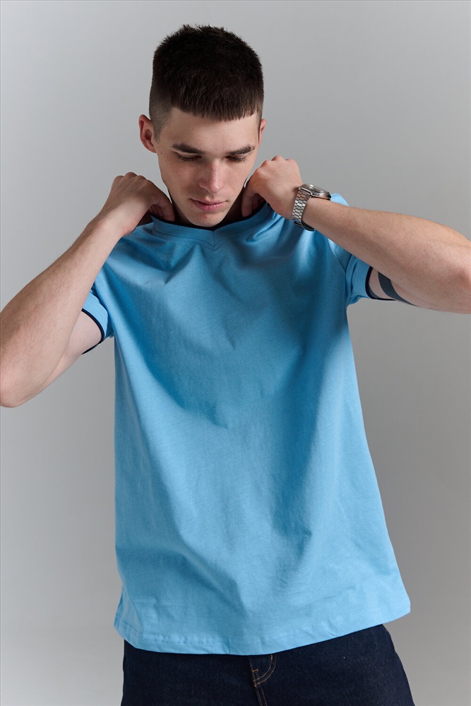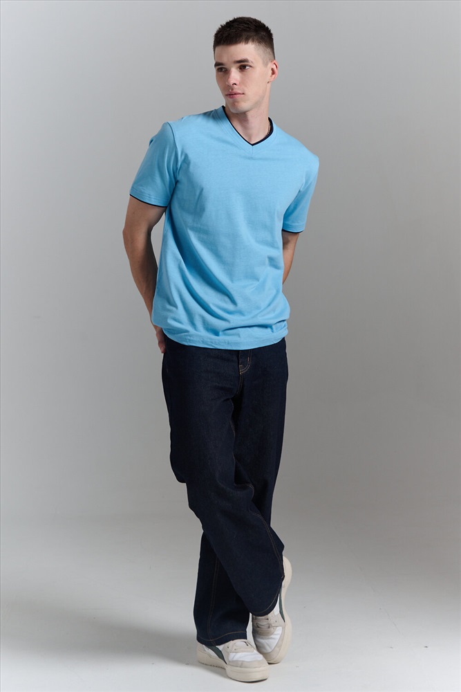 Футболка мужская однотонная с окантовкой из плотного дышащего хлопка. Модель в расслабленном молодежном стиле. Свободный прямой крой база для любого гардероба. Представлены мягкие футболки стандартных размеров, подходят на высокий рост. С усиленным V-Образным вырезом и окантовкой, подойдет для тренировок, офиса, учебы, активного отдыха, туристических поездок, встреч с друзьями и дома.