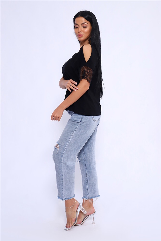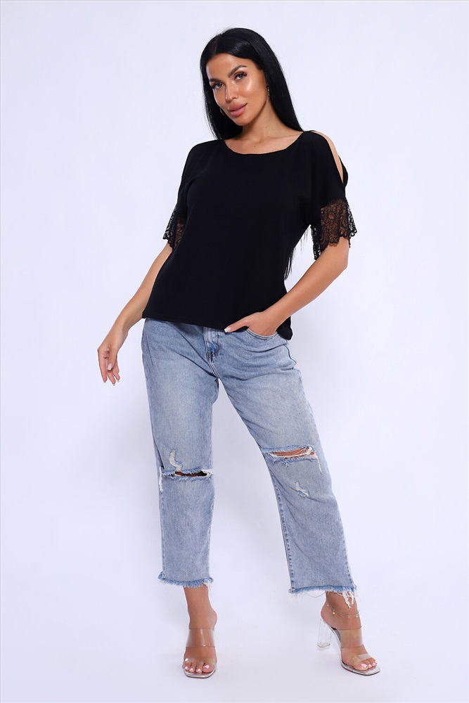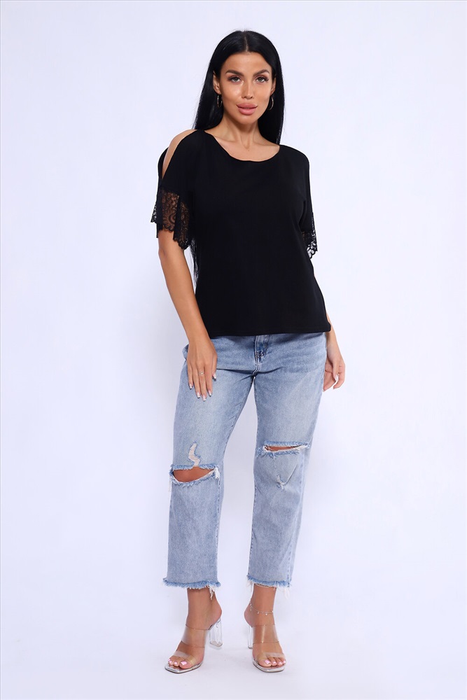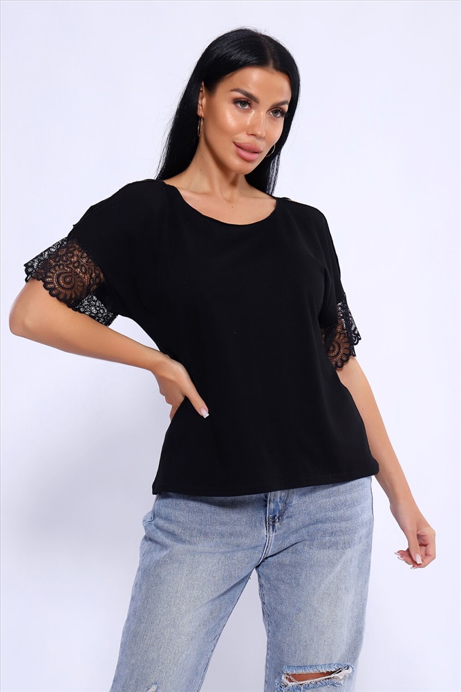 Футболка женская из гипоаллергенного хлопкового трикотажа - кулирки высокого качества пенье компакт. Модель слегка приталенного силуэта, горловина и спущенная пройма обработаны краёвкой, что придаёт футболке некую изюминку и индивидуальность. Пройма обработана широким, жаккардовым кружевом в виде короткого рукава. Стильная, комфортная футболка необходимая вещь для модницы любого возраста и фигуры, подойдет как для офисного гардероба так и для отдыха, активного занятия спортом.
