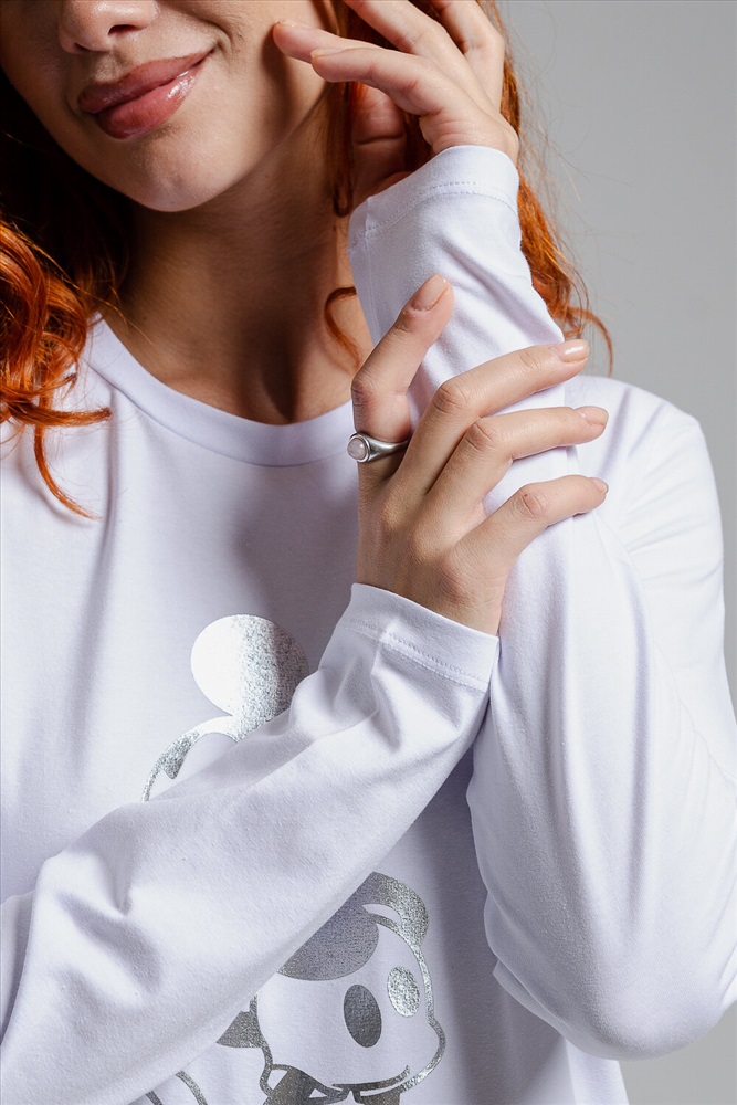 Лонгслив снова в моде и прочно обосновался в базовом гардеробе современного человека. Удобная трикотажная кофта представляет собой футболку с длинным рукавом, которую можно использовать как самостоятельный элемент, так и носить под пиджак, толстовку или рубашку. Лонгслив выполнен из высокоплотного хлопкового трикотажа и является невероятно комфортным и удобным. Футболка с длинными рукавами имеет прямой базовый крой и классическую линию плеча. Лонгслив - это неформальный стиль, когда на футболку можно надеть клетчатую рубашку и сочетать с кедами и джинсами. За счет натуральной ткани лонгслив можно носить в качестве домашней одежды или нательного белья, одежды для сна, тренировочной спортивной одежды и военной экипировки. Если вы хотите силуэт оверсайз нужно взять на размер или два больше, ориентируйтесь по таблице замеров. Принт фольга придает металический блеск и переливы на свету.