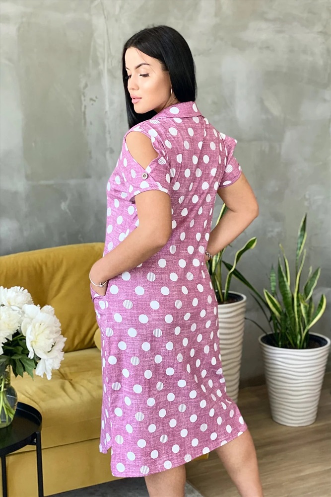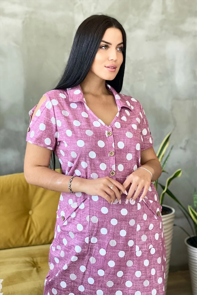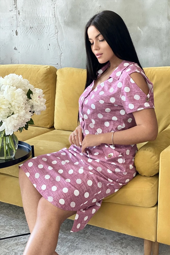 Производитель: Натали; Российский размер: 46; Обхват груди: 92; Обхват талии: 71; Обхват бедер: 98; Артикул поставщика: 7270; Ткань: кулирка; Состав: хлопок 100%; Сезон: Весна, Лето; Год: 2024 Платье женское полуприлегающего силуэта с застежкой поло.