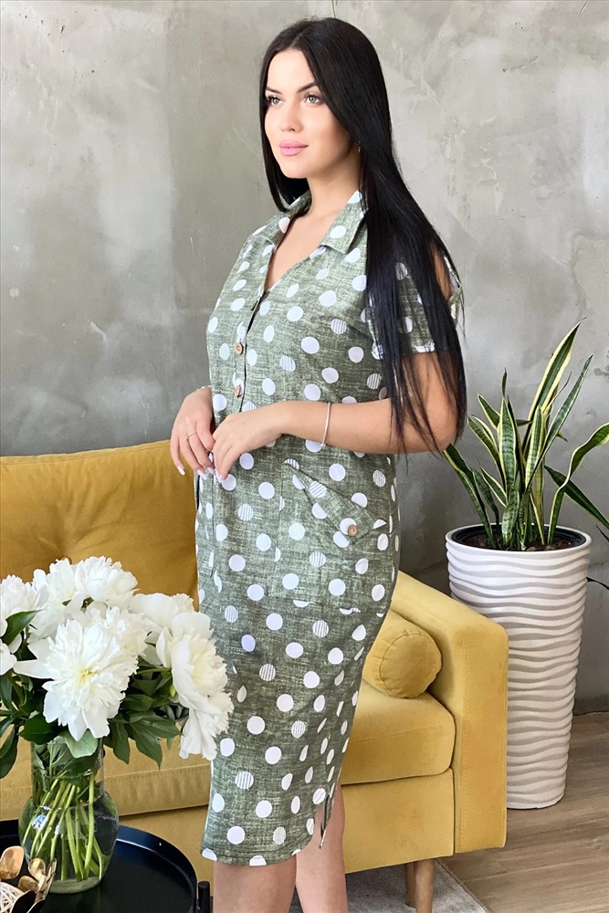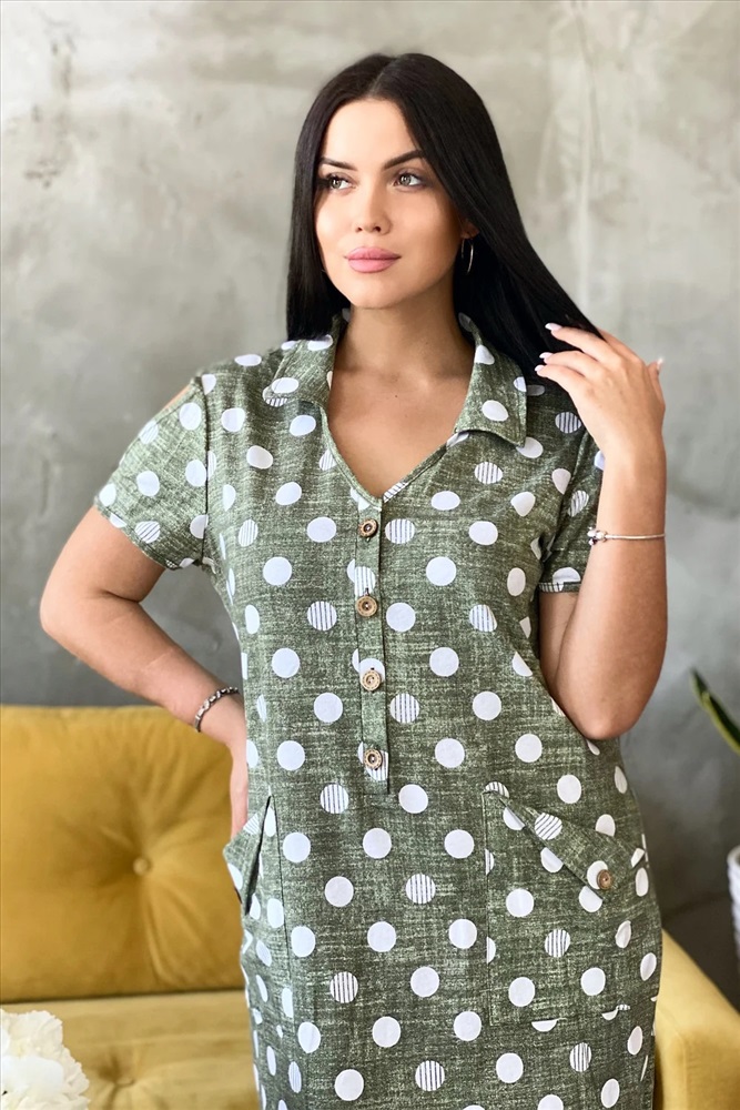 Платье женское полуприлегающего силуэта с застежкой поло.