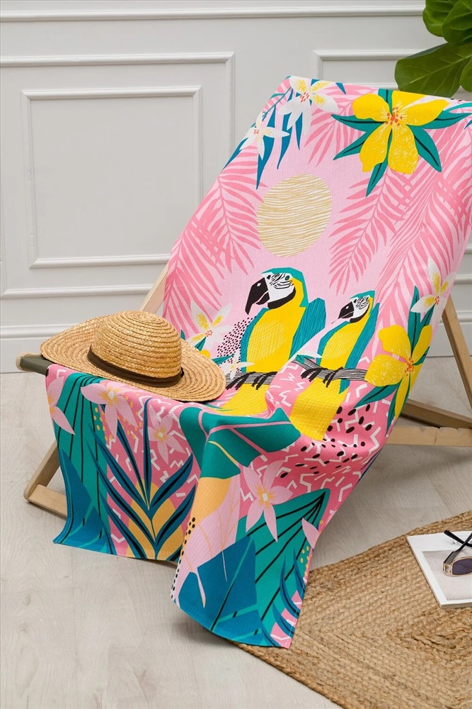 Производитель: Натали; Артикул поставщика: Полотенце банное Рандеву; Ткань: вафельное полотно; Состав: 100% хлопок; Сезон: Осень, Зима, Весна, Лето; Год: 2026 Большое банное полотенце Рандеву, отличное решение для отпуска. Вафельное полотенце с попугаями имеет отличную впитывающую способность, при этом полотенце достаточно компактно, что позволяет его брать с собой. Полотенце универсально, подойдет как для пляжа, бани, сауны, так и для тренировки. Размер полотенца 150*100, по длинной стороне пришита петелька. Изделие представлено в двух цветах, голубой и розовый.