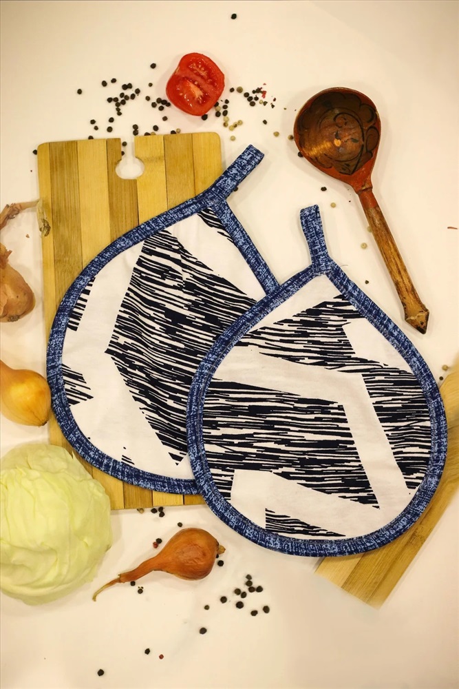 Набор из 2-х прихваток с петлей. Отшиваются из остатков разных видов тканей (из кулирки 6 слоев, из футера - 5 слоев). По цвету не подбираются, могут отличаться от представленных на фото