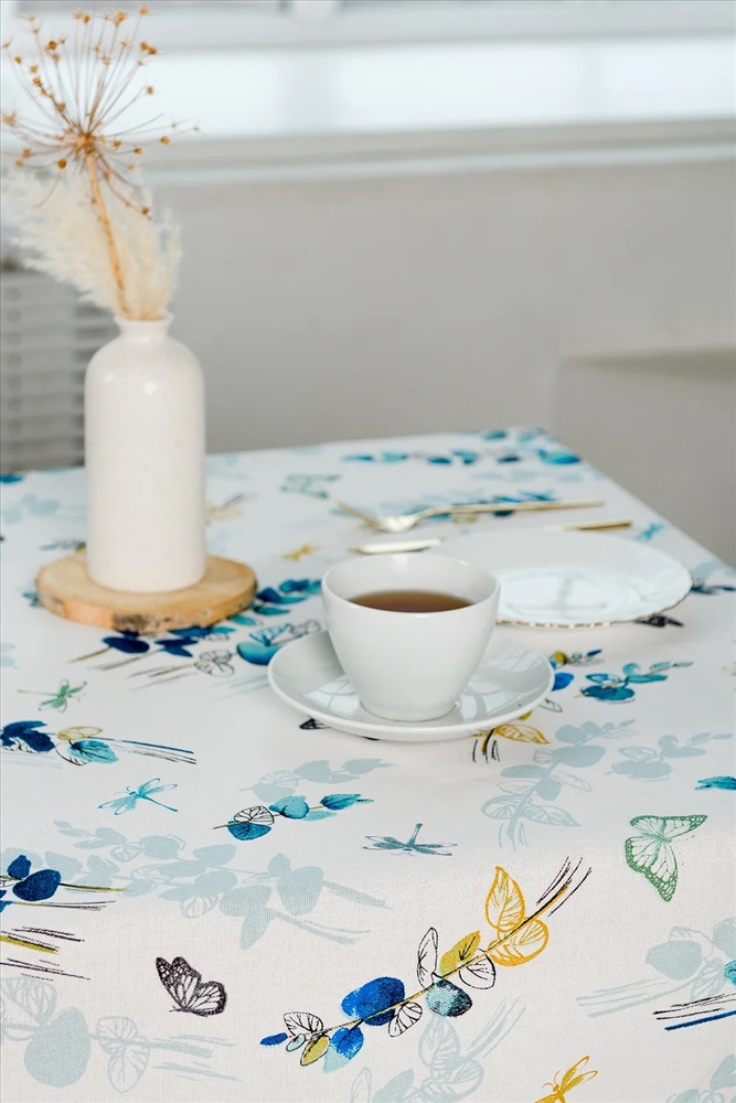 Стильная светлая скатерть размером 220*150 для большого стола. Изделие выполнено из рогожки плотностью 170 грамм/м2. Для окрашивания ткани используются стойкие натуральные красители, благодаря чему скатерть не выцветает после многочисленных стирок.
