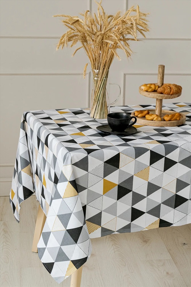 Скатерть Голд - идеальное сочетание качества и стиля. Геометрический дизайн в виде строгих разноцветных треугольников притягивает взгляды. Изделие изготовлено из высококачественной плотной рогожки и подойдет как для повседневного использования, так и для особых случаев. Рогожковая скатерть не требует особого ухода и сохраняет первоначальный даже после многочисленных стирок. Рекомендуется стирка при 30-40 градусах на деликатном режиме. В дополнение к скатерти можно так же приобрести полотенца голд, продаются отдельно.