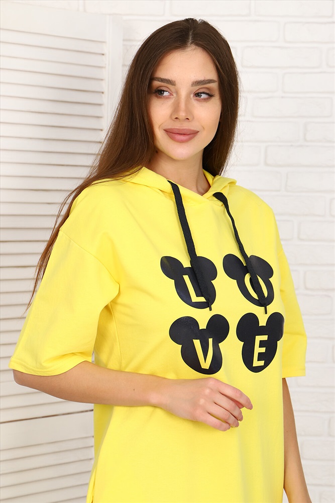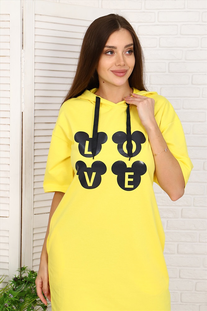 Туника с молодёжным принтом из тонкого, приятного к телу футера 2-х нитки с лайкрой. Модель с капюшоном, спущенная пройма, короткий свободный рукав, в боковых швах удобные карманы. Принт на передней полочке гармонично сочетается с декоративным шнуром в капюшоне. Туника - это универсальная вещь, которая должна быть в гардеробе каждой женщины, независимо от возраста и фигуры.