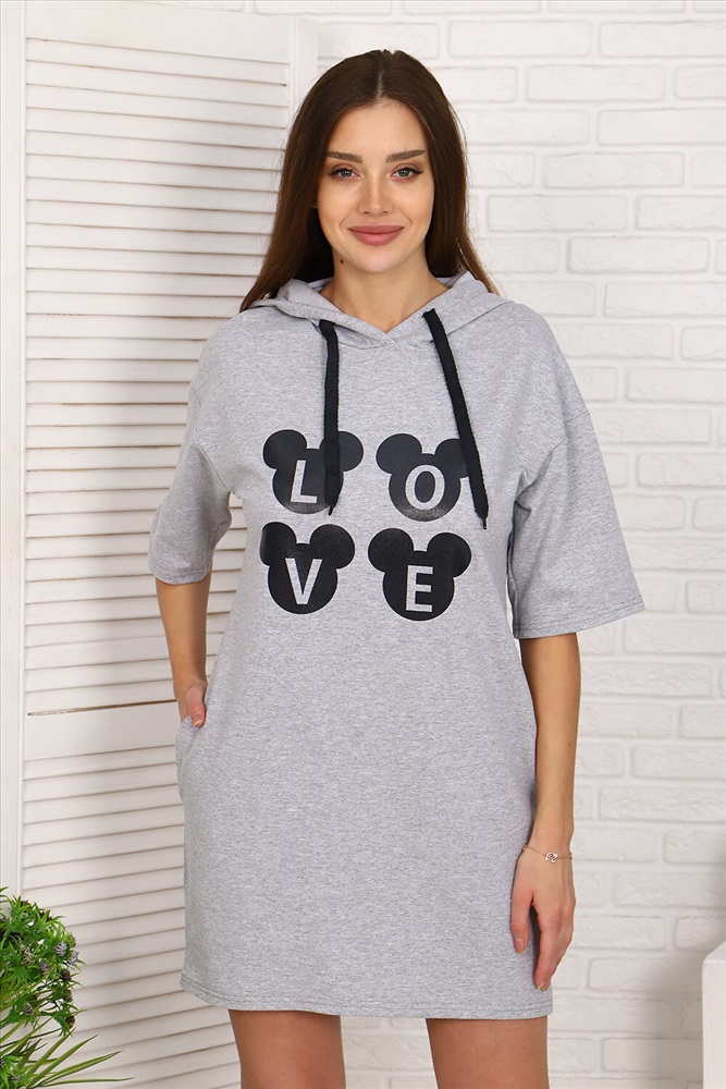 Производитель: Натали; Российский размер: 44; Обхват груди: 88; Обхват талии: 67; Обхват бедер: 94; Артикул поставщика: 24876; Ткань: футер с лайкрой 2-х нитка; Состав: хлопок 74%, п/э 20%, лайкра 6%; Сезон: Осень, Зима, Весна, Лето; Год: 2024 Туника с молодёжным принтом из тонкого, приятного к телу футера 2-х нитки с лайкрой. Модель с капюшоном, спущенная пройма, короткий свободный рукав, в боковых швах удобные карманы. Принт на передней полочке гармонично сочетается с декоративным шнуром в капюшоне. Туника - это универсальная вещь, которая должна быть в гардеробе каждой женщины, независимо от возраста и фигуры.