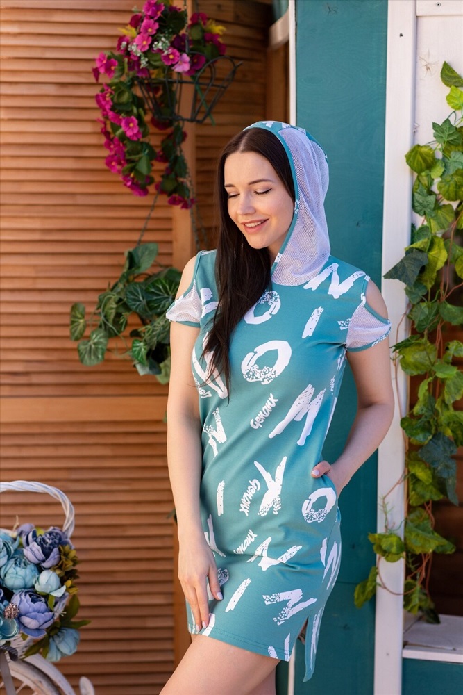 Производитель: Натали; Российский размер: 42; Рост: 170; Обхват груди: 84; Обхват талии: 63; Обхват бедер: 90; Артикул поставщика: 8232; Ткань: кулирка с лайкрой; Состав: хлопок 95%, лайкра 5%; Сезон: Лето; Год: 2024 Туника полуприлегающего силуэта, длиной выше колена спереди и удлиненной спинкой, с капюшоном из сетки, с карманами в боковом шве. Рукав короткий, из сетки, с фигурным вырезом. В нижней части боковых швов обработаны разрезы. Лицевой край капюшона, фигурные вырезы и низ рукавов обработаны бейкой из основного полотна.