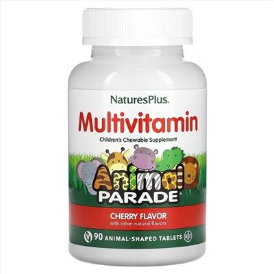 NaturesPlus, Source of Life, Animal Parade Gold, жевательные мультивитамины с микроэлементами для детей, со вкусом вишни, 90 таблеток в форме животных