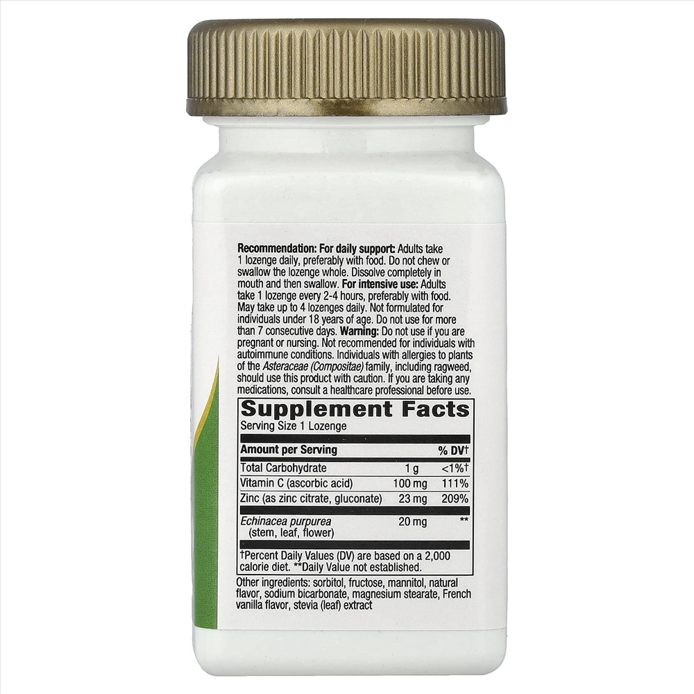 Сотрудники Nature's Way® уверены, что только природа способна дать нам все самое лучшее. Именно поэтому мы отбираем самые качественные травы, которые только есть на земле. Любые материалы, которые мы используем в качестве сырья, проходят тщательную проверку на наличие примесей и содержание действующих веществ. Вот почему наши продукты отличаются бескомпромиссным качеством и помогают сделать вашу жизнь более здоровой. Это не просто наш путь, это путь природы — Nature's Way™. Рекомендации по применениюПринимайте по 1 леденцу каждые два часа, не более 6 леденцов в день. Не используйте более 7 дней подряд. ИнгредиентыСорбитол, фруктоза, маннит, натуральный ароматизатор, бикарбонат натрия, стеарат магния, натуральный ароматизатор «Французская ваниль», экстракт листьев стевии. Не содержит соли, дрожжей, пшеницы, сои, молочных продуктов, консервантов. ПредупрежденияЭтот продукт предназначен только для взрослых (для лиц 18 лет и старше). Не принимайте данный продукт натощак, так как это может привести к незначительному расстройству пищеварения. Не жевать и не глотать леденцы целиком. Подождать полного растворения во рту. Не рекомендуется принимать лицам с аутоиммунными заболеваниями. Лицам с аллергией на растения семейства сложноцветных (Compositae), включая амброзию, следует использовать этот продукт с осторожностью Если вы беременны, кормите грудью или принимаете какие-либо лекарства, проконсультируйтесь с врачом перед использованием. Хранить в недоступном для детей месте. В целях безопасности имеет внутреннюю защитную пленку с принтом. Не используйте данный продукт, если защитная мембрана повреждена или отсутствует.