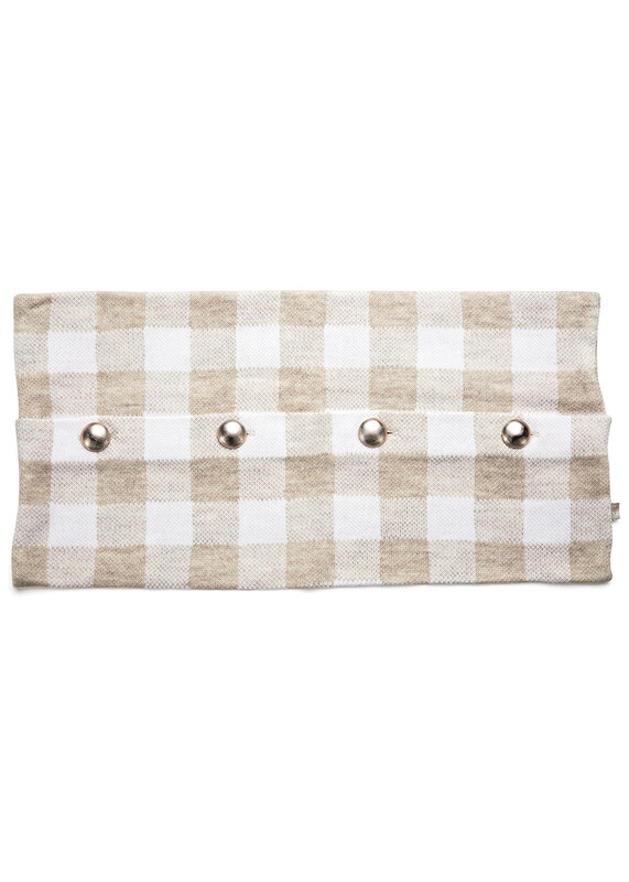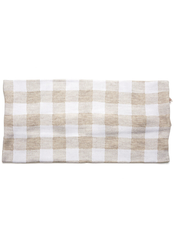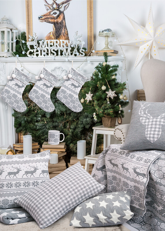 Вязаная наволочка с тематическим жаккардовым рисунком на пуговицах декорирована имиджевой нашивкой