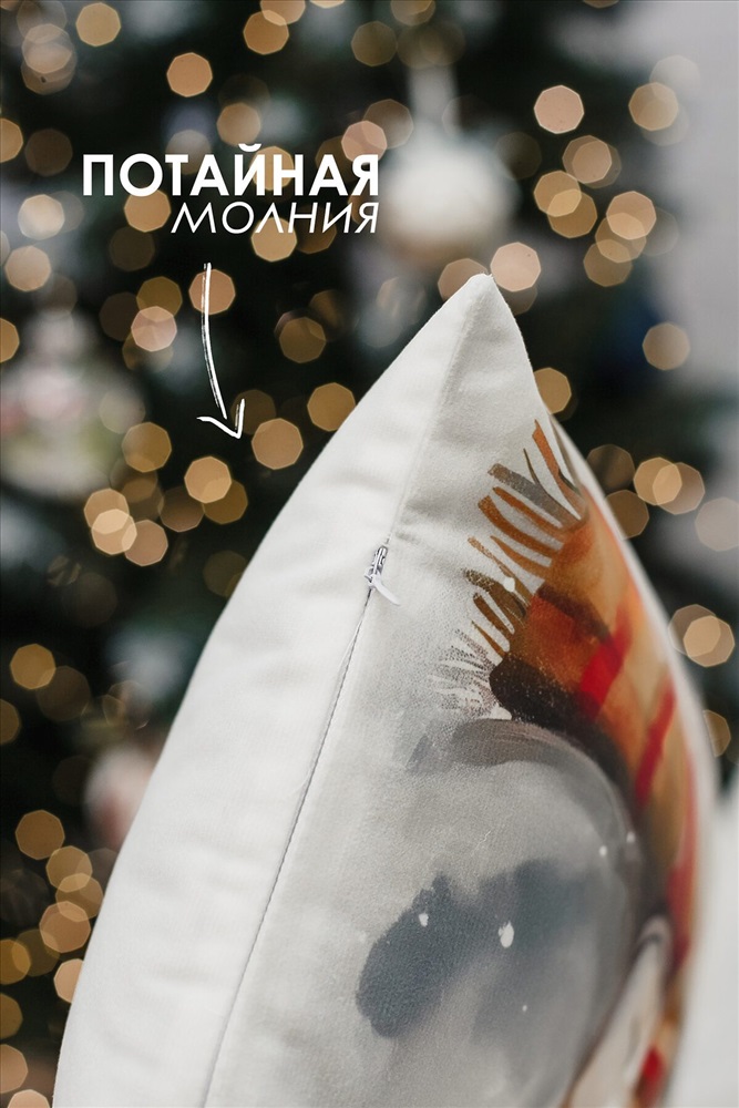 ID товара: 1221260 Состав: 100% Полиэстер Сезон: Осень/Зима Вид ткани: Велюр Страна бренда: Россия Страна производства: Россия Новогодняя наволочка 4545 см выполнена из качественного материала. Лицевая сторона украшена выразительным 3Д рисунком на новый год, который придаёт интерьеру глубину и настроение праздника, а обратная сторона однотонная, что облегчает сочетание с другими элементами декора. Ткань мягкая, гладкая и очень приятная на ощупь, дарит тактильный комфорт при прикосновении и выглядит элегантно вблизи. Мягкий материал обеспечивает износостойкость, устойчивость к выцветанию и простоту ухода наволочка легко стирается, быстро сохнет и сохраняет форму даже после многократных стирок. Потайная молния аккуратно спрятана в шве и не нарушает целостности узора, позволяя быстро снять чехол для стирки и при этом сохранять аккуратный внешний вид. Изделие мало мнётся и долговечно, поэтому прекрасно подходит для повседневного использования в спальне, гостиной или детской, а также станет стильным и практичным подарком на Новый год 2026. Сочетание визуальной выразительности рисунка с гномом и снеговиком, делает эту наволочку универсальным элементом, который добавит уюта и современности любому интерьеру. Её универсальный размер подходит как для дивана, так и для кресла, а также может украсить спальню или гостиную. Эта наволочка станет чудесным подарком на Новый год для мамы или сестры, принося радость и уют в их повседневную жизнь. Создайте атмосферу праздника и заботы с этой очаровательной наволочкой! Комментарии к товару