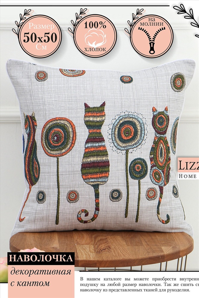 ID товара: 1126689 Состав: 100% Хлопок Сезон: Демисезон Основная ткань: Хлопок Вид ткани: Рогожка Страна бренда: Россия Страна производства: Россия Наволочка 50х50 см (+/- 1-2 см) из рогожки с кантом идеальна для диванных подушек и декорирования гостиной, спальни и других мест отдыха. На дачу, кафе и ресторан. Чехол имеет универсальный размер 50х50 см. Рисунок - это набивной принт! Наволочка одинаково хорошо подойдет как на подушку размером 45х45 см. В нашем магазине представлены наволочки 50х50 см. Теплые пастельные тона наволочки отлично сочетаются с широким спектром цветов мебели. Ткань рогожка устойчива к износу и прослужит долгие годы. Мягкий узор принесет тепло и уют в вашу комнату. Наволочка на диванную подушку оснащена молнией, которая легко позволяет снять ее. Декоративная наволочка из плотной ткани рогожка (100% хлопок) обладает повышенной износостойкостью и отлично вписывается в любой интерьер. Этот материал придает поверхности матовый, мягкий вид. При этом он очень приятный на ощупь и не выцветает на солнце. Однотонные чехлы с молнией по шву идеально подходят на диванные подушки. Это очень хороший подарок на день рождения для вашей мамы, бабушки, сестры и подруге. На др или новоселье. Создайте неповторимую комбинацию из нескольких чехлов разных цветов. Также они прекрасно сочетаются со шторами, покрывалами из и другими товарами для Вашего интерьера. Такой декор для комнаты поможет быстро изменить атмосферу помещения, обновить привычную обстановку и задать настроение. Выдерживают до 6000 стирок и устойчивы к появлению затяжек. Стирать их можно при 40 градусах на деликатном режиме. Они замечательно будут смотреться в спальне, на диване в гостиной или на кровати в детской. В ресторанном интерьере или на даче. Такой комплект станет шикарным аксессуаром для вашего дома и добавит ему изюминку. Комментарии к товару