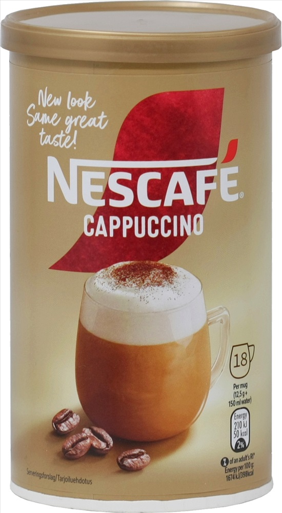 Производитель Nestle первая компания, которая выпустила партию растворимого каппучино.Банка 225 гр. растворимого кофе Nescafe Cappucino, рассчитана на 18 средних порций.1-2 ложки порошка залить горячей водой и на поверхности чашки появляется молочная пена, как у настоящего каппучино. Просто, удобно и очень вкусно!Сбалансированное сочетание классического вкуса кофе и нежной густой пенки капуччино, порадует любителей изысканного вкуса. Nescafe Cappucino признано самым популярным растворимым кофе в Финляндии.