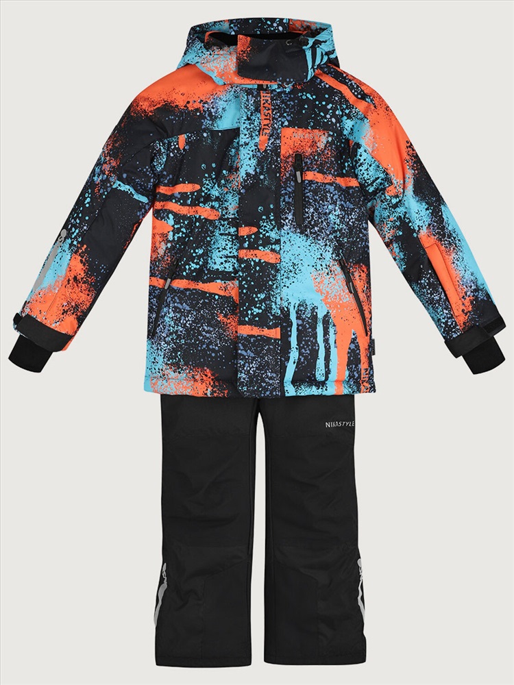 Костюм ГРАФФИТИ из мембранной ткани 5000/5000 с водо-грязеотталкивающей технологией TEFLON. Мембранная ткань это не продуваемый и водонепроницаемый материал, который надежно защищает от ветра и влаги. Благодаря дышащим свойствам мембраны ребенку будет комфортно в любую погоду, и он не вспотеет. Ткань обработана снаружи экологически чистым протектором TEFLON для защиты от воды и грязи. Мембрана в сочетании с утеплителем нового поколения FIBERlite сохраняет тепло во время прогулок, позволяя телу дышать. Флисовая подкладка отводит влагу и имеет хорошие теплоизоляционные свойства.Функционал: - центральная застежка и карманы на молнии, - внутренний карман на молнии, ветрозащитная планка, - съемный капюшон на молнии, - кулиса для регулировки объема по капюшону и по низу куртки, - трикотажные манжеты в рукавах, - внутренние бретели для возможности снять куртку в помещении, - карман на рукаве под ски-пасс, - снегозащитная юбка. Мы все продумали до мелочей, поэтому брюки дополнительно оснащены:- регулируемыми бретелями и отстегивающейся спинкой, - удобными карманами,- снегозащитными муфтами,- регулировкой объема брюк под обувь на молнии, - флисовой подкладкой до середины бедра, - светоотражающими элементами для безопасности ребенка в темное время суток. Область колен и шов сидения проклеены, места повышенного трения выполнены из особо прочной ткани.Комфортная температура эксплуатации от 0°С до -25° С. Рекомендуем приобрести комплектом аксессуары, обувь и другие вещи из капсулы в карточке товара, которые отлично сочетаются с изделиями коллекции