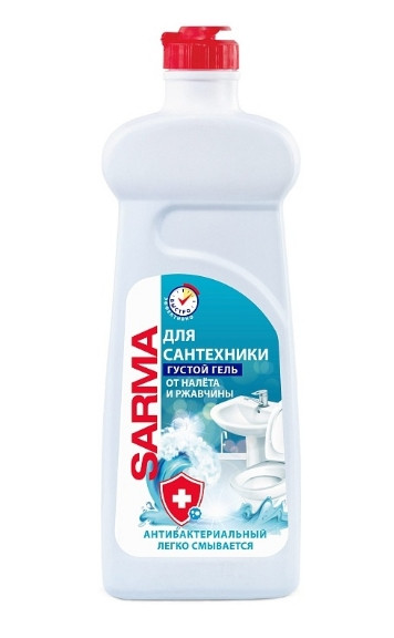 Универсальное чистящее средство «САРМА» для чистки поверхностей в ванной и по всему дому. Удаляет грязь, ржавчину, мочевой камень, неприятный запах, известковый налет, остатки моющих средств.
