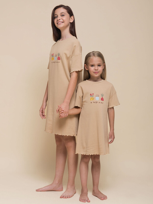 Состав: 100%хлопок Красивая и очень уютная ночная сорочка в стиле "хюгге" для девочки. В составе ткани 100% хлопка — изделие мягкое, великолепно пропускает воздух, давая коже ребёнка дышать. Идеальный вариант для детской одежды! Сорочка комфортного прямого кроя — в ней уютно и удобно спать. Домашнее платье нежного бежевого цвета "овсяное молоко" украшено милым цветочным принтом с текстом "уютный дом" на груди. Принт мягкий и эластичный, отлично переносит многочисленные стирки. Сорочка украшена декоративной обработкой "салатный край" по низу и краям рукавов — стильно и по-девичьи. Такая сорочка идеальна для сна как дома, так и в детском саду, а также как домашняя одежда — прекрасный подарок любой девочке, дочке, внучке, племяннице. Комментарии к товару