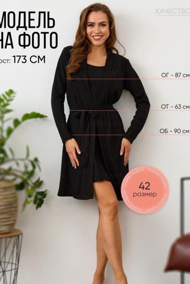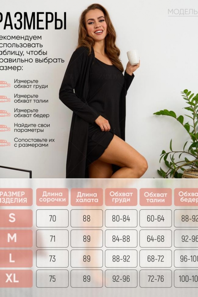 Модная двойка из сорочки на бретельках и халата с длинными рукавами - это стильный комплект для домашнего отдыха и комфортного сна. Трендовый набор незаменим для повседневной носки. Халат на запах на поясе и ночнушка из ткани лапша представлены в разных размерах и подходят для высоких и невысоких девушек и взрослых женщин. Изделия белого цвета из дышащей легкой, но плотной ткани, приятной к телу, имеют оптимальную длину. Вискозный материал обеспечивает приятное ощущение на коже и позволяет телу дышать во время сна. Мягкое и эластичное трикотажное полотно обеспечивает воздухопроницаемость и подходит для носки на отдыхе, в больнице или санатории. Незаменима такая женственная сорочка для создания романтичного сексуального образа. Эстетичное изделие не мнется, поставляется упакованным в удобный zip-пакет. Длина изделия выше колена очень комфортна, не перекручивается во время сна, не давит и не натирает. Красивая, домашняя одежда подходит для носки каждый день. Сорочка и халат, представленные и в больших размерах, изготовлены из материала в составе которого 25% вискозы, 70% полиэстера и 5% лайкры. Трендовый трикотажный комплект имеет модный силуэт и современный дизайн, подчеркивая женственность и элегантность. Молодежный короткий халатик и короткая нарядная сорочка на тонких лямках с глубоким вырезом подходит для носки осенью, а также в летние и весенние дни. Набор из двух шикарных вещей станет отличным выбором для пижамной вечеринки летом и весной, осенью и зимой. Популярная модель из ткани в рубчик идеально подойдет для отдыха на даче. Милая сорочка с декольте и стильный халатик станут отличным подарком маме на любой праздник.