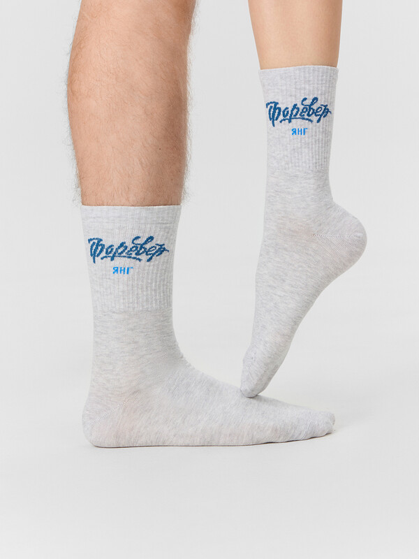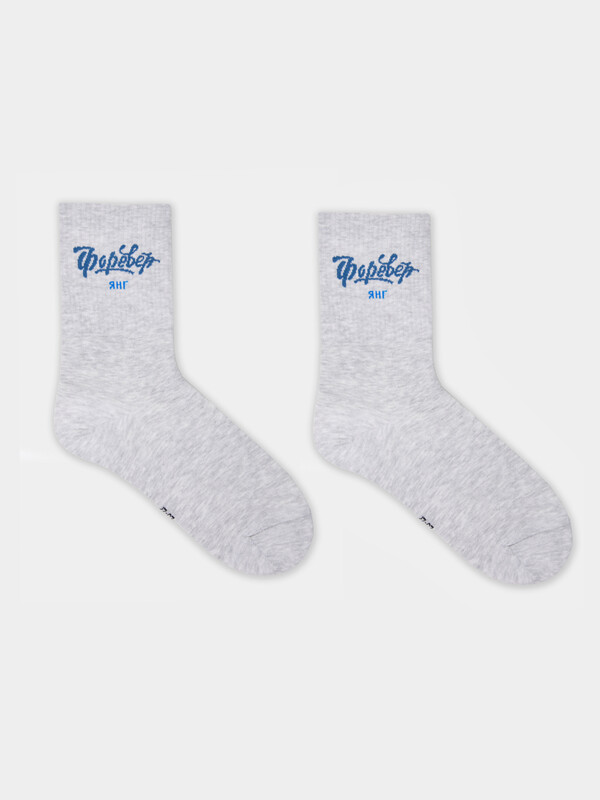 рис.3285 Носок высокий с плотным бортом и рисунком в виде надписи "ФОРЕВЕР янг".
