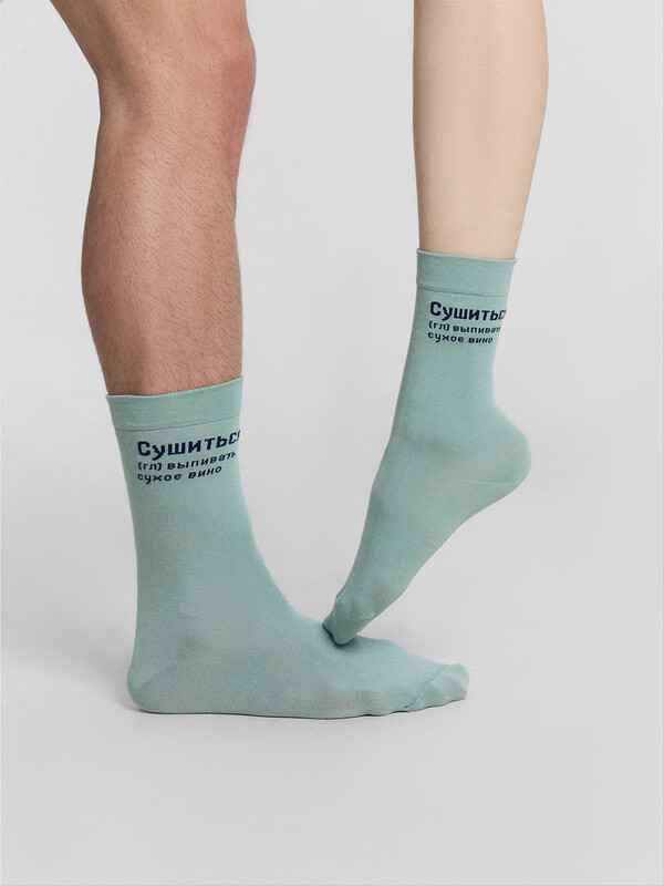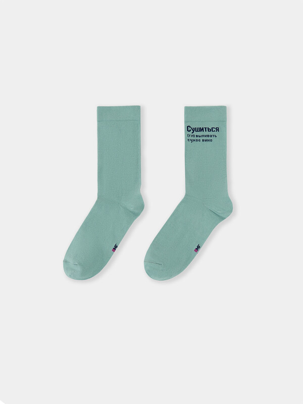 рис.2718 Носки высокие, классические с тонким, гладким бортом с рисунком в виде надписи "Сушиться, (гл) выпивать сухое вино"