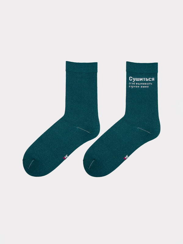 рис.2718 Носки высокие, классические с тонким, гладким бортом с рисунком в виде надписи "Сушиться, (гл) выпивать сухое вино"