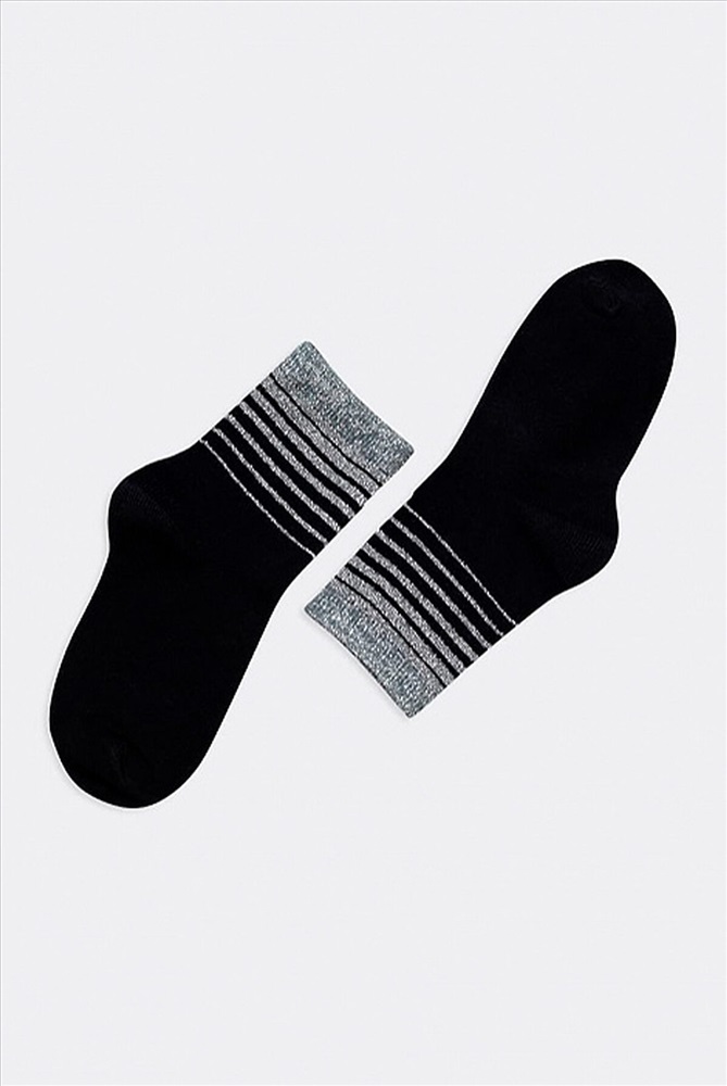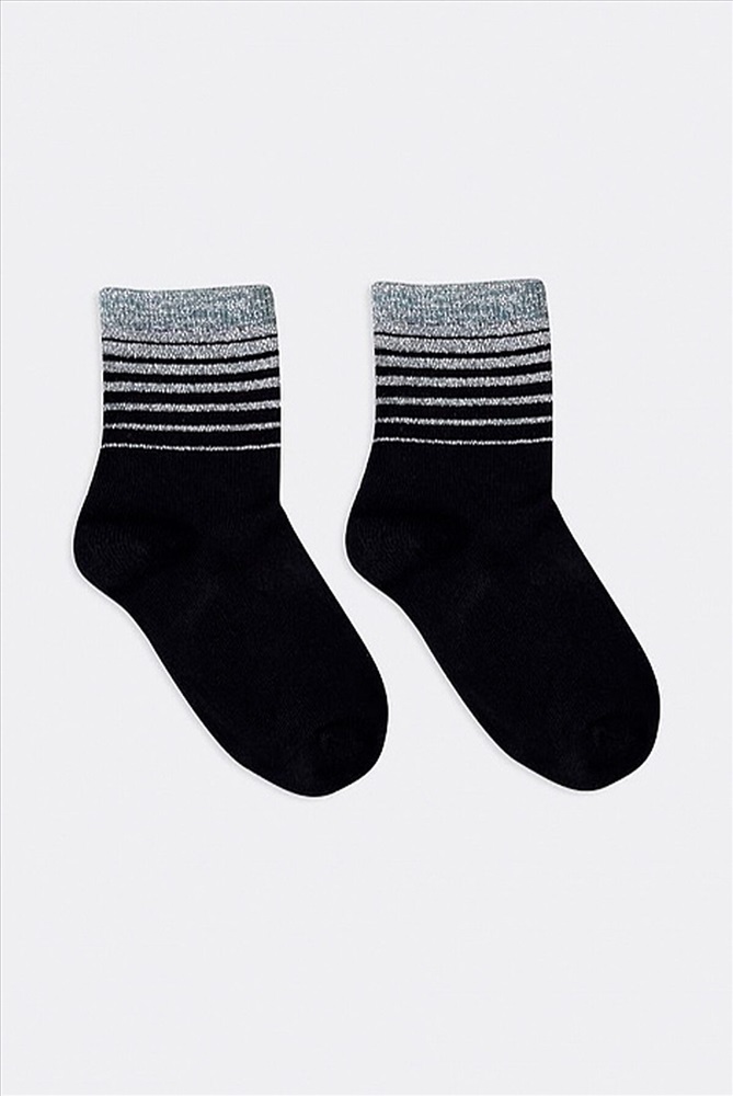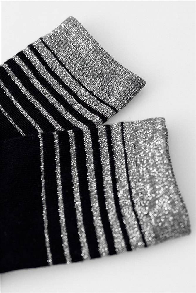 Детский гладкий носок рисунком в виде поперечных полосок из люрекса. Комплект из пяти пар. Цена указана за пять пар.