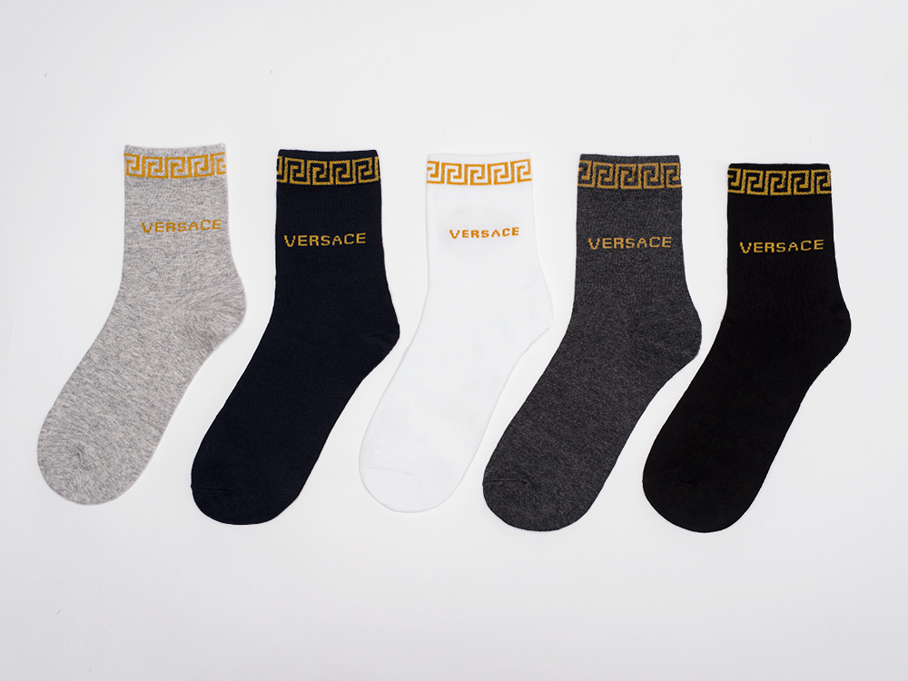 Цвет: Разноцветный Вид аксессуаров: Носки длинные 5 пар Носки Versace – это модный, стильный, практичный аксессуар, В комплекте идет 5 пар носков в разных цветовых вариациях. Абсолютно на всех парах стоит фирменный логотип Versace Gianni Versace S.p.A. — это итальянская компания, основанная Versace является производителем модной одежды, парфюмерии,