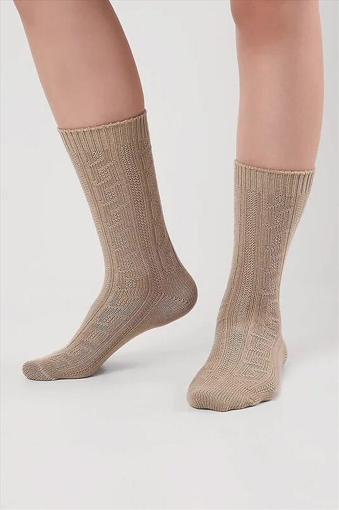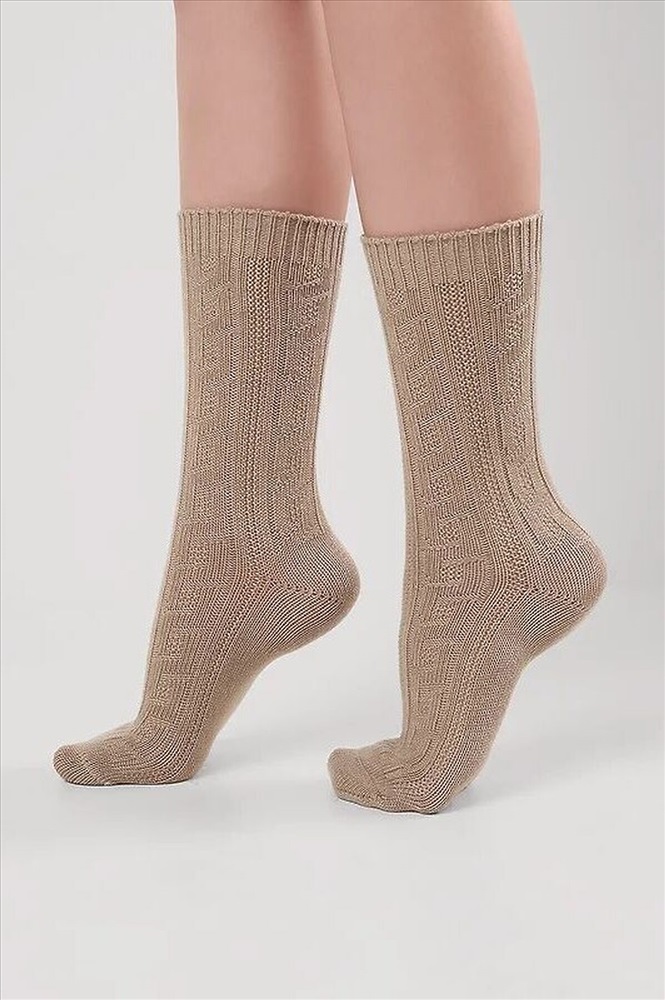 ID товара: 1216322 Состав: 55% Нейлон, 40% Вискоза, 5% Эластан Сезон: Осень/Зима Основная ткань: Нейлон Вид носков/гольф: Фантазийные Страна бренда: Россия Страна производства: Россия Женские объемные носки из вискозы с рисунком косы. Комментарии к товару