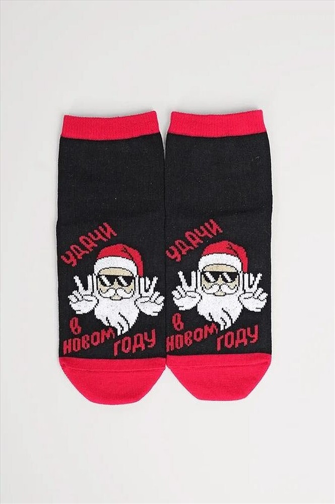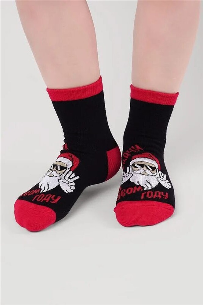 ID товара: 1218123 Состав: 80% Хлопок, 15% Полиамид, 5% Эластан Сезон: Осень/Зима Основная ткань: Хлопок Вид носков/гольф: Фантазийные Страна бренда: Россия Страна производства: Россия Детские носки с выделенным мыском, пяткой и бортом, с рисунком лицо деда мороза и надписью удачи в новом году Комментарии к товару