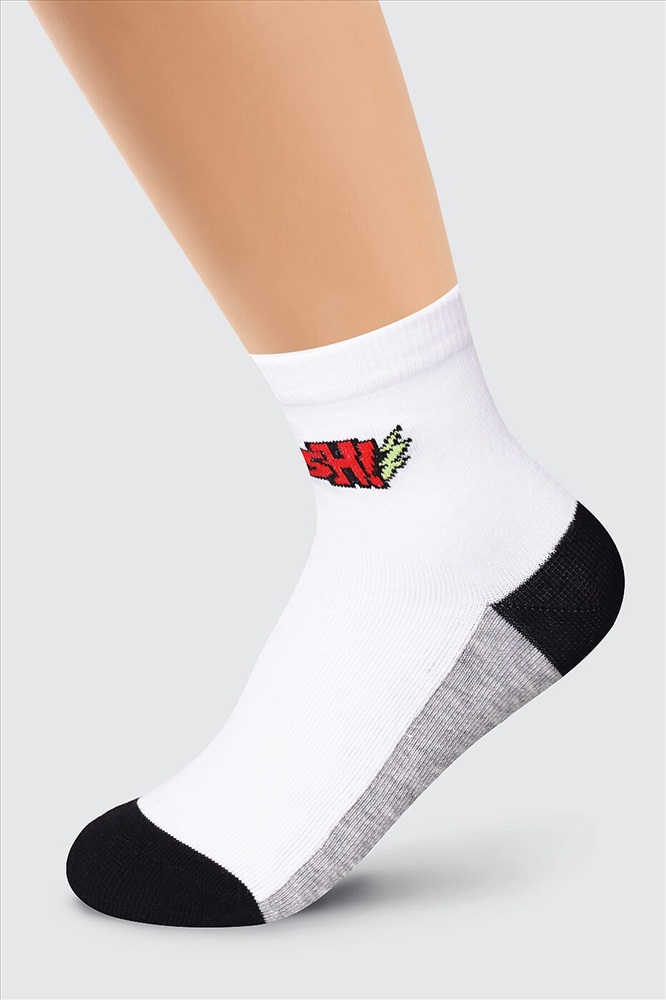 ID товара: 853414 Состав: 80% Хлопок, 18% Полиамид, 2% Эластан Сезон: Весна/Лето Рисунок: Фантазийный Основная ткань: Хлопок Вид носков/гольф: Фантазийные Страна бренда: Россия Страна производства: Россия Носки для мальчика с выделенным следом и пяткой, с надписью Комментарии к товару
