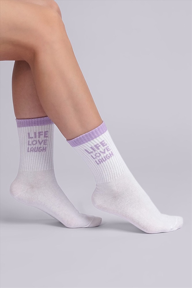 ID товара: 902138 Состав: 70% Хлопок, 25% Полиамид, 5% Эластан Сезон: Демисезон Рисунок: Надпись Основная ткань: Хлопок Вид носков/гольф: Фантазийные Страна бренда: Россия Страна производства: Россия Удлиненные женские носки с цветной резинкой и надписью " живи, люби, смейся" Комментарии к товару