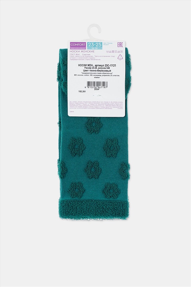ID товара: 1067545 Состав: Хлопок 80%, Полиамид 18%, Эластан 2% Сезон: Демисезон Основная ткань: Хлопок Вид носков/гольф: Фантазийные Страна бренда: Беларусь Страна производства: Беларусь Мягкие махровые носки из хлопка с объемными рисунками созданы, чтобы дарить комфорт и сохранять тепло. • классическая длина • комфортное облегание • с бортом • махровые • объемные рисунки • устойчивые к многочисленным стиркам. Комментарии к товару