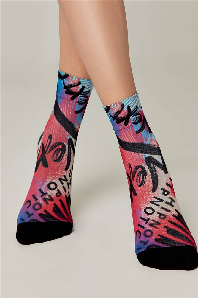 ID товара: 999407 Состав: Полиэстер 45%, Полиамид 41%, Эластан 14% Сезон: Весна/Лето Рисунок: Фантазийный Плотность: 70 den Вид носков/гольф: Фантазийные Страна бренда: Беларусь Страна производства: Белоруссия Плотные носки с особенно устойчивым рисунком, нанесенным с помощью термотрансферной печати, станут стильным и индивидуальным акцентом в повседневных образах. Термотрансферная печать - процесс, при котором специальная краска на бумажном носителе резко нагревается, переходит из твердого состояния в газообразное и переносится с бумаги на носки, глубоко проникая в волокна и создавая устойчивое изображение. · 70 den · плотные и эластичные · рисунок, нанесенный с помощью термотрасферной печати · использование черной полиамидной нити для контрастности рисунка · мысок выделен черной полиамидной нитью · эффект 3D · c бортом · без пятки · стиль начинается с индивидуальности. Комментарии к товару