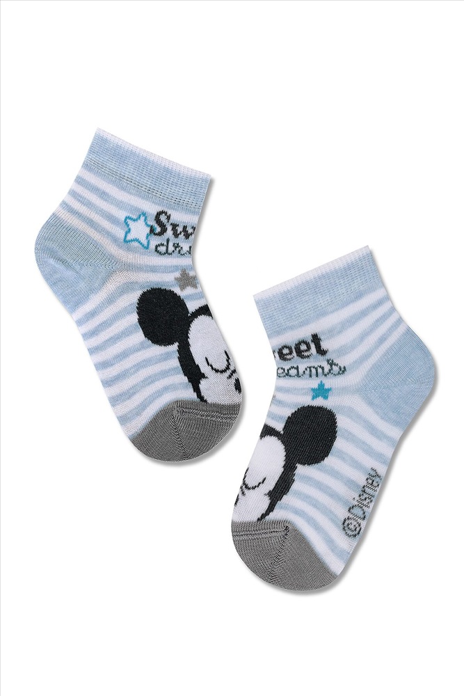 ID товара: 105992 Состав: Хлопок 68%, Полиамид 30%, Эластан 2% Сезон: Демисезон Длина: Длинные Рисунок: Фантазийный Основная ткань: Хлопок Страна бренда: Беларусь Страна производства: Белоруссия Укороченные хлопковые носки для маленьких непосед. В носках с изображением забавных Микки и Минни Маус играть, бегать и шалить весело вдвойне! Комментарии к товару