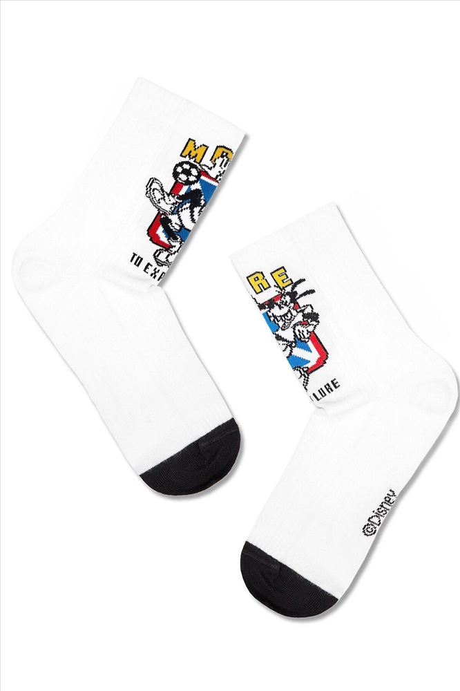Хлопковые носки для занятий спортом специально для юных футболистов. Любимые герои мультфильмов ©Disney поднимут настроение и укрепят стремление к победе. Микки Маусу, Дональду и Гуффи уже не терпится сыграть с вами в футбол!