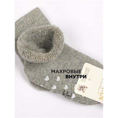 Тёплые, махровые носки из собачьей шерсти защитят ноги ребенка от холода и влаги. Носки с антискользящим покрытием на стопе. Идеально подходят на осенне-зимний сезон.