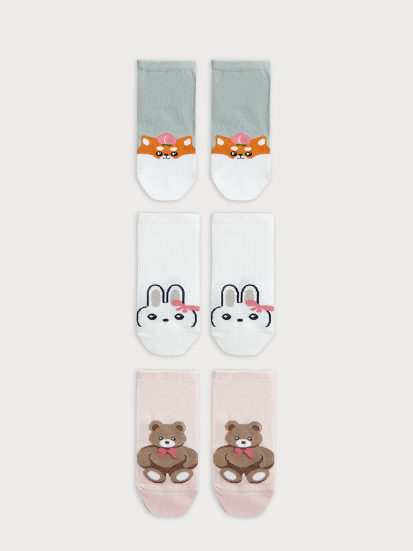 рис.2785 Мультипак из гладких укороченных детских носков с рисунком в виде животных. Составляющие: 406A-2786, 406A-2787, 406A-2788