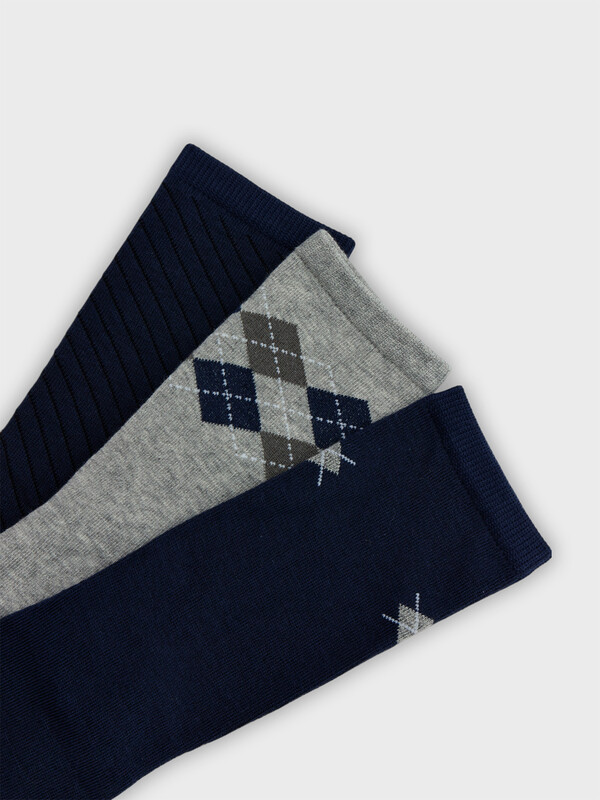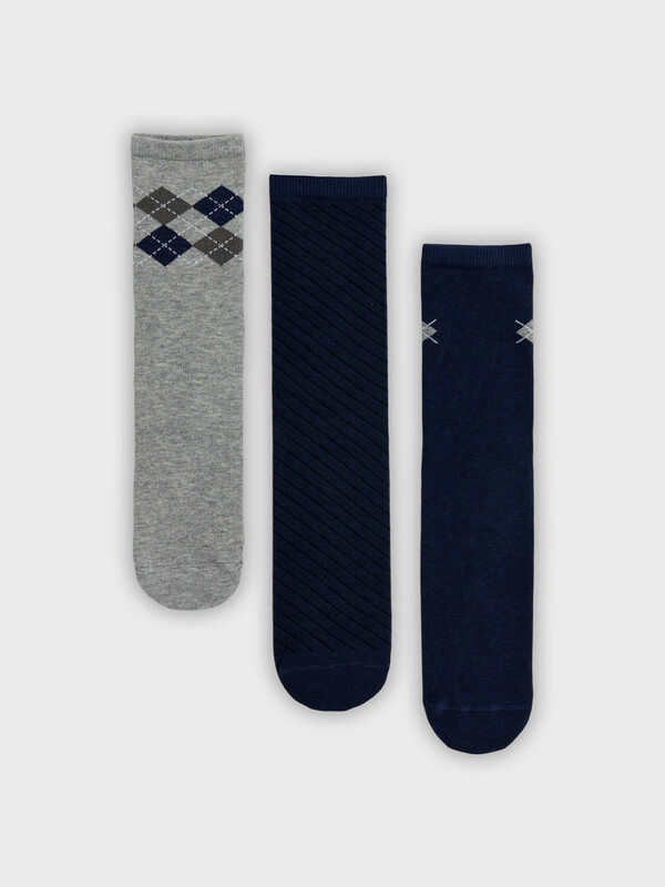 Производитель: Mark Formelle Мультипак из трех пар гладких детских носков с рисунком в виде ромбов и диагональной полоски.