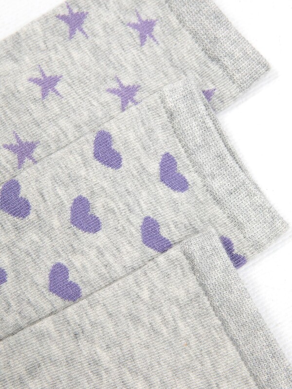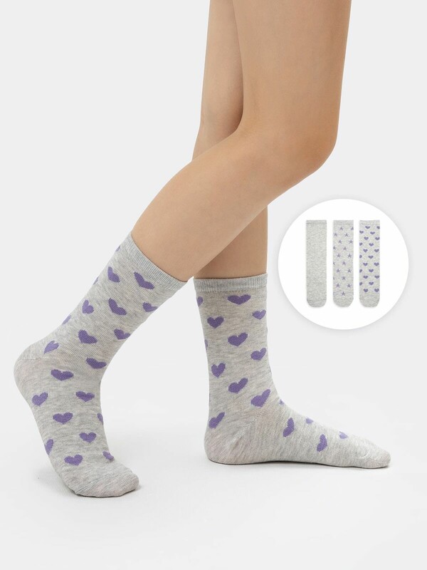 Высокие детские носки мультипак (3 пары) серые с рисунком в виде лавандовых сердец и звёздочек из высококачественного хлопка. Натуральные волокна отлично пропускают воздух и впитывают влагу, дарят ощущение комфорта в течение дня. Благодаря небольшому количеству эластана в составе, высокие детские носки удобно сидят и не сползают, хорошо тянутся и легко надеваются. Пятка и мысок дополнительно укреплены для защиты от протирания. Резинка мягко, но надежно удерживает носки, не оставляя на коже следов. В ассортименте Mark Formelle можно выбрать самые разнообразные дизайны и расцветки: однотонные зеленые, желтые, синие или серые детские носки подойдут и для мальчика, и для девочек, найдутся модели в полоску, с оригинальными авторскими рисунками, орнаментами, а также базовые носки белые и черные детские. Маленьким модникам точно понравятся!
