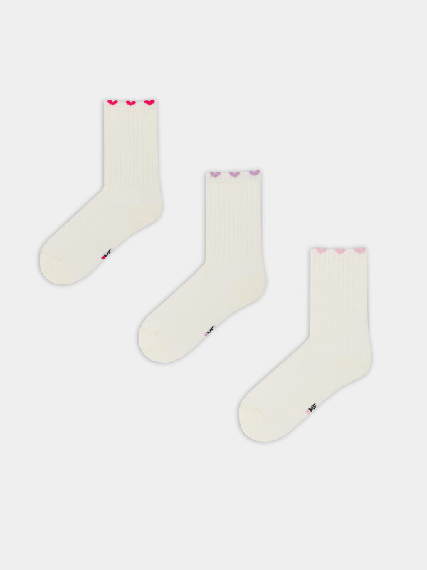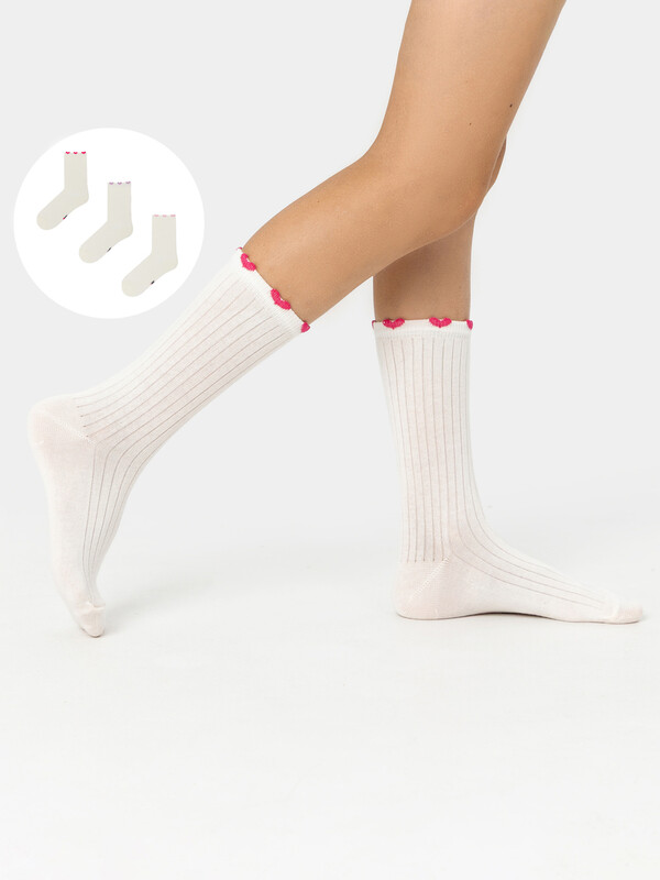 рис.3175 Мультипак из детских классических носков выполненных перекидным переплетением (лапша) с пикотом в виде сердечек на бортике. Составляющие:430A-3175