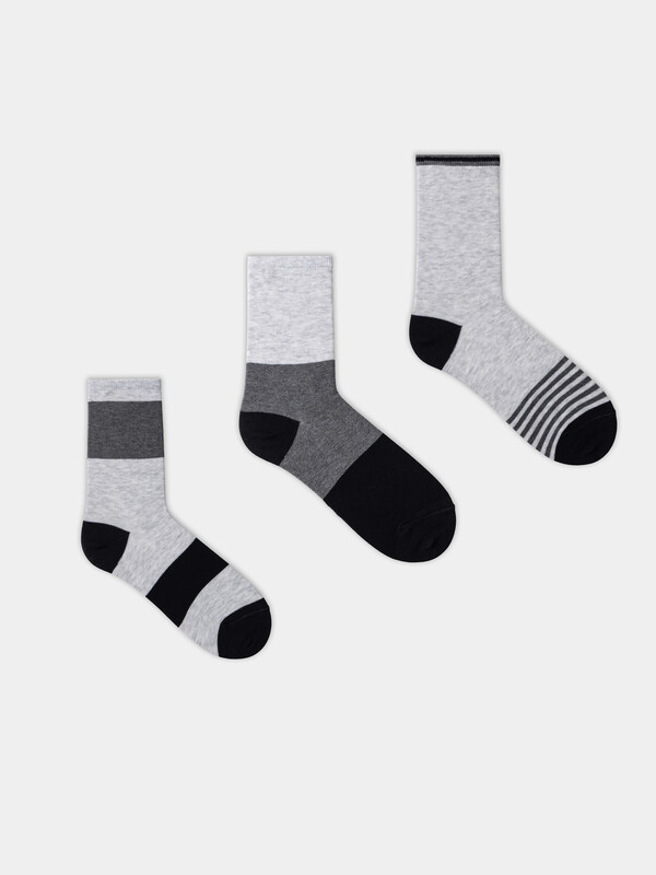 рис.3382 Мультипак из классических детских носков с рисунком в виде сочетаний цветных полос разных ширин. Составляющие: 430A-3383, 430A-3384, 430A-3385