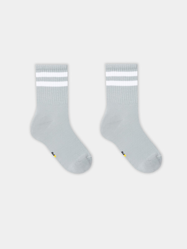 рис.2458 Детский носок гладкий с высокой резинкой и рисунком в виде поперечных полосок