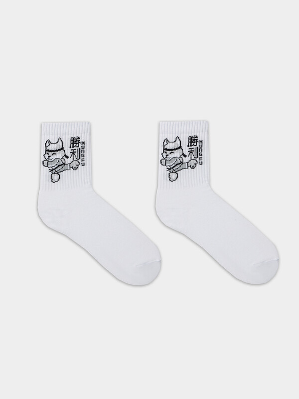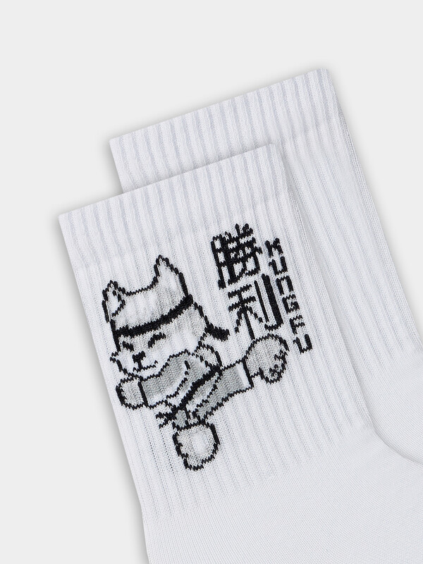 Производитель: Mark Formelle рис.2706 Детский носок гладкий с высокой резинкой и рисунком в виде кота-каратиста с иероглифами.