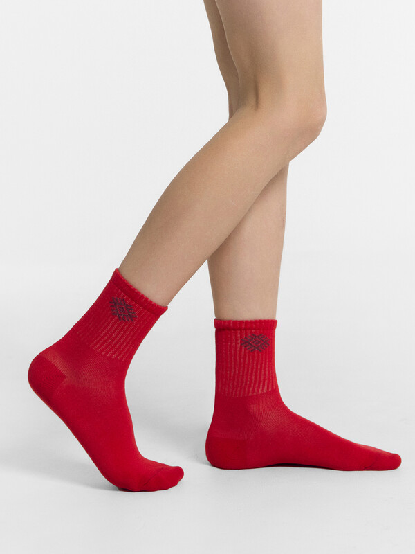 рис.2775 Детский носок с высоким плотным бортом и рисунком в виде орнамента.