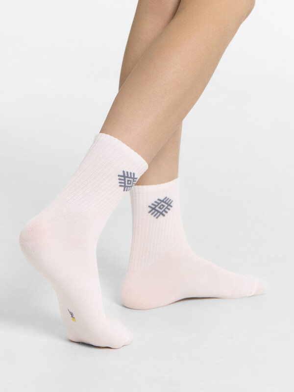 рис.2775 Детский носок с высоким плотным бортом и рисунком в виде орнамента.