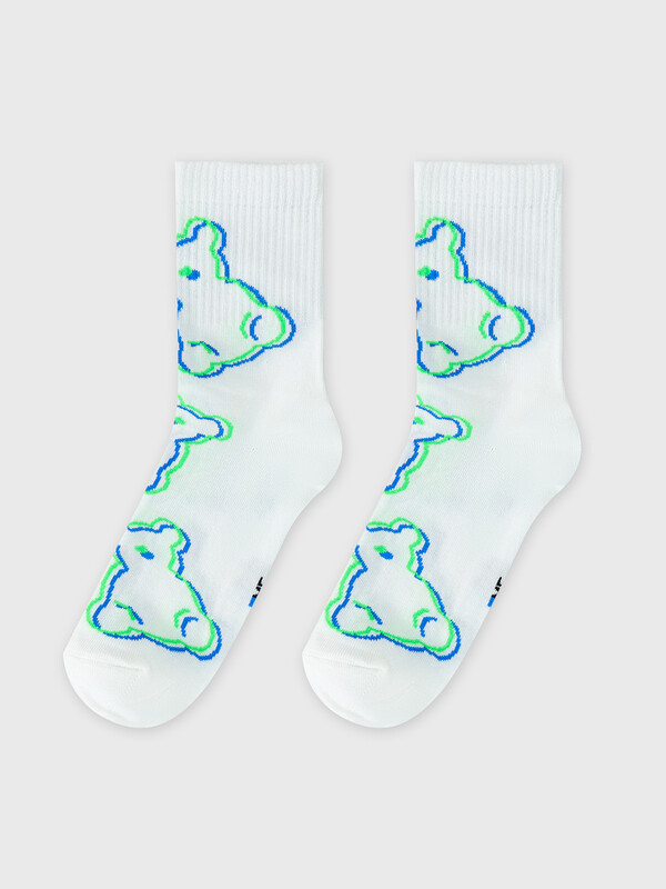 рис.2791 Детский носок с высоким плотным бортом и контурным рисунком в виде медведя.