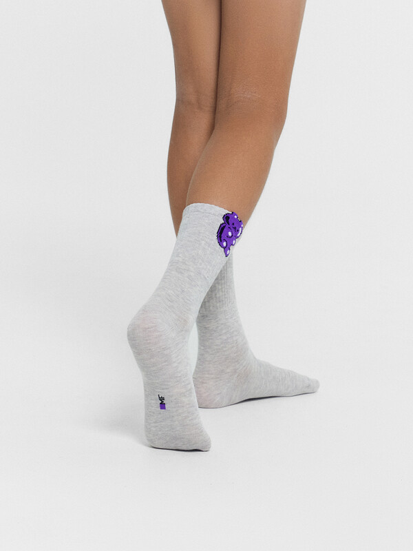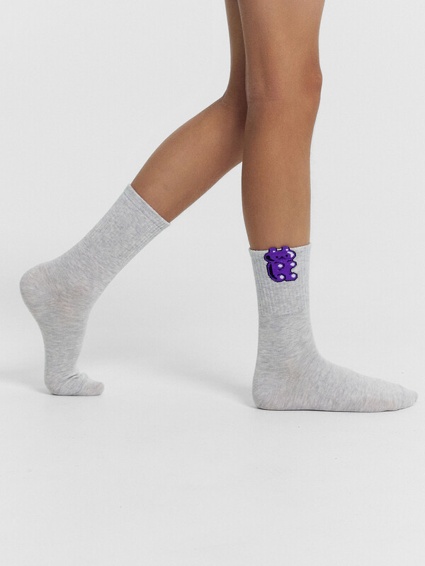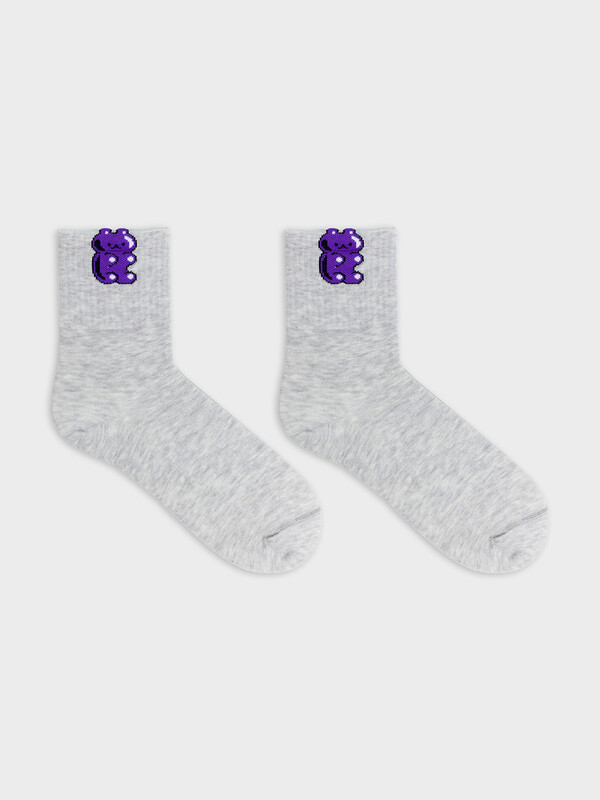рис. 2845 Детский носок с высоким плотным бортом, рисунком в виде мишки с элементом пикота на бортике.