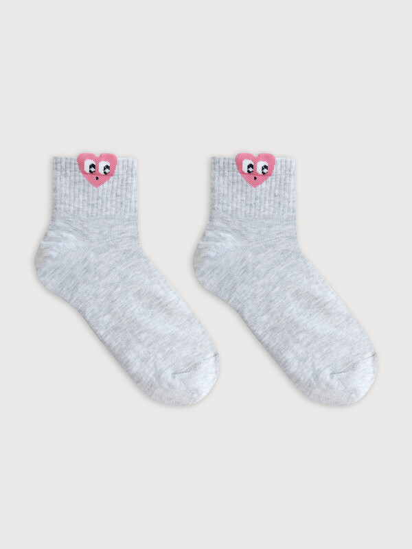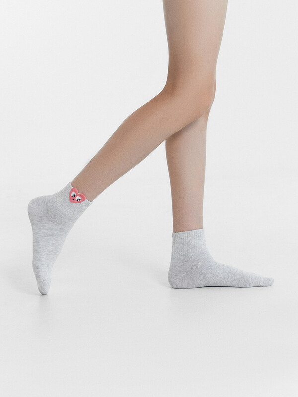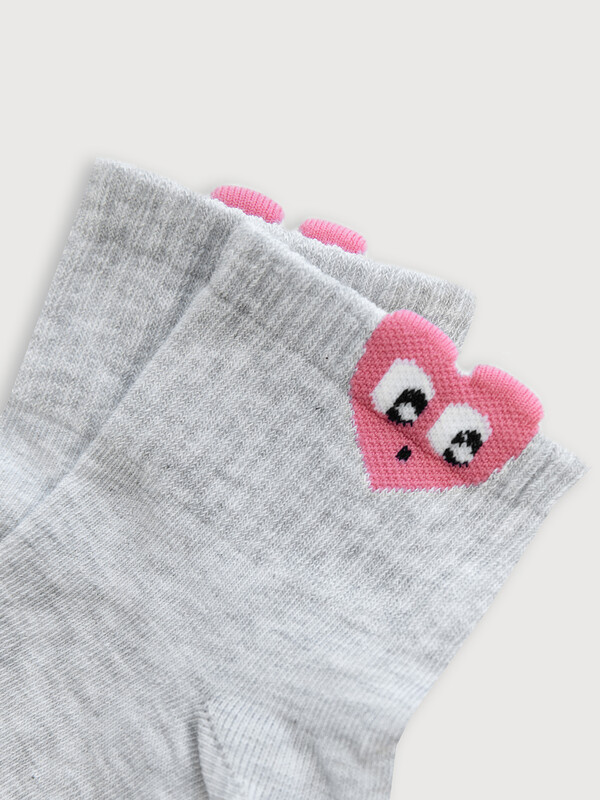 рис.2773 Гладкий детский носок с резинкой средней высоты и объёмным рисунком в виде сердца.